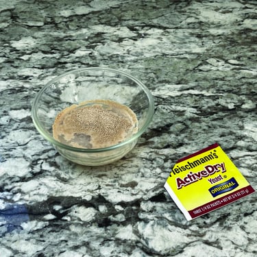 2 Rehydrate yeast in 1/4 cup warm water